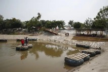 | Las filas de camiones y automóviles detenidos se extiende por decenas de kilómetros debido a que el tráfico está completamente colapsado