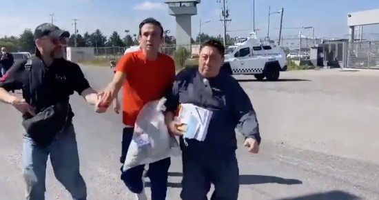 El exfuncionario salió de prisión con un pants gris y con folios personales. A las afueras del penal, era esperado por colaboradores y familiares, que inmediatamente los trasladaron en camionetas blancas, cerca de las 9:45 horas del centro de México.