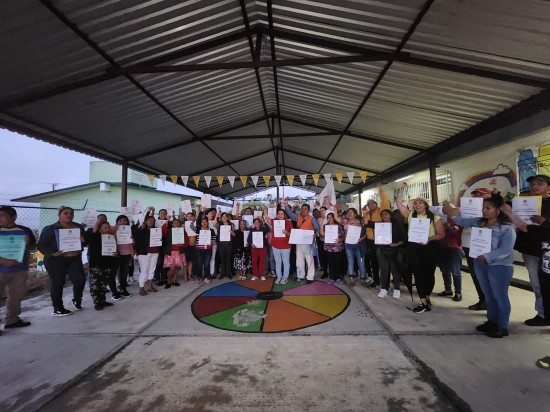 Xalapa, Ver.- El día de hoy, vecinos de la colonia antorchista Margarita Morán Véliz, primera sección, recibieron más de 100 escrituras que le da certeza jurídica a sus terrenos, que por más de 5 años gestionaron.
