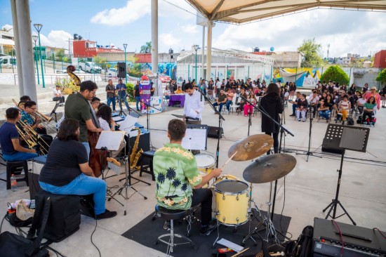 Como parte de la estrategia de colaboración con la Universidad Veracruzana (UV), Jazzuv Comunitario y el Ayuntamiento, a través de las direcciones de Desarrollo Social y Juventud, así como el Instituto Municipal de las Mujeres de Xalapa (IMMX), organizaron un concierto de Big Band en el Centro Comunitario El Moral, en el marco del Día Nacional para la Prevención del Embarazo No Planificado en Adolescentes. De acuerdo con la directora de Juventud, Gelsey Yareni Varela Castillo, se trata de una forma de atraer a las juventudes hacia temas culturales, con el fin de acercarles información sobre salud sexual y reproductiva, como el uso de métodos anticonceptivos a través del programa #YoMeCuido. Durante el concierto, que incluyó temas clásicos del folclor mexicano como El Cascabel, La Llorona y La Bruja, el director de la banda, Tonatiuh Vázquez Vilchis, ofreció una breve explicación didáctica sobre cada uno de los instrumentos de la agrupación musical. Este concierto estuvo dedicado a estudiantado del Telebachillerato de El Moral, mientras que el 28 de septiembre se realizará otro evento similar para alumnado del Telebachillerato de El Castillo. |