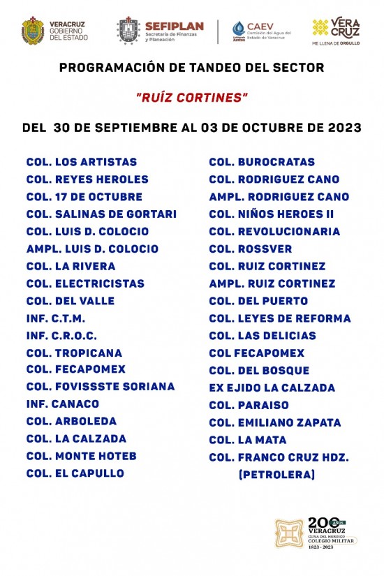| CAEV Tuxpan informa que a partir de hoy el servicio se encuentra para el “Sector Colonias”. | ||||||