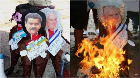 Aún con la visita de representantes de 11 naciones de América Latina, tanto migrantes como connacionales aprovecharon la ocasión para manifestar su desacuerdo con las acciones del gobierno federal, pero también con alguno de los personas que asistieron como los representantes de Venezuela y Cuba, Nicolás Maduro y Miguel Díaz-Canel, respectivamente. Protestas de integrantes de la SNTE y CNTE Durante las primeras horas del día, ante la llegada del mandatario mexicano, se reportó una concentración de integrantes del Sindicato Nacional de Trabajadores de la Educación (SNTE) y de la Coordinadora Nacional de Trabajadores de la Educación (CNTE). La manifestación tenía como objetivo la reinstalación de la Mesa Nacional para solucionar, junto con la administración federal, los problemas relacionados con las carencias que tendría el gremio en la entidad, así como la abrogación de la Reforma Educativa, laboral, al ISSSTE, inclusive contra el congelamiento de las plazas del Comité Seccional y el cese de 60 profesores. Ante la concentración de civiles, autoridades del estado de Chiapas llegaron para entablar una conversación y liberar el paso; sin embargo, esto no ocurrió. Momentos después llegó la titular de la Secretaría de Gobernación (Segob), Luisa María Alcalde, así como otros miembros de la dependencia para garantizar una reunión con la titular de la Secretaría de Educación Pública (SEP) y el gobernador del estado. Manifestación de migrantes y quema de piñatas Mientras tanto, en Tapachula, Chiapas, alrededor de 200 migrantes varados en la frontera sur del país se manifestaron en contra de la visita de los presidentes de Nicaragua, Venezuela y Cuba, Daniel Ortega, Nicolás Maduro y Miguel Díaz-Canel, respectivamente. La concentración se dio específicamente en el límite de la frontera entre México y Guatemala, ahí los inconformes se presentaron con tres piñatas de los personajes antes mencionados, las cuales primero fueron paseadas y, posteriormente, quemadas. Ante las preguntas de los medios de comunicación del porqué de dicha acción, los migrantes explicaron que se encontraban en contra de la cumbre que organizó el gobierno mexicano debido a que presuntamente buscarían lucrar con el problema social que ellos enfrentan. “La cumbre lo que trae es más de lo mismo, no hay nada más que la corrupción de los países que quieren lucrar con la migración, el dolor y la sangre”, refirió el director de Pueblos sin Fronteras, Irineo Mújica. Las protestas en la zona, específicamente en el Parque Bicentenario, comenzaron desde el pasado viernes y sábado, en todas ellas los migrantes han pedido a las autoridades mexicanas atender las solicitudes de refugio, especialmente a la Comisión Mexicana de Ayuda a Refugiados, pues alegaron que los trámites han tardado de seis meses a un año. Asimismo, una joven venezolana, María Elena Lans, comentó a La Jornada su desacuerdo con la reunión ya que consideró que la visita de Nicolás Maduro podría dificultar la relación con los Estados Unidos y así les podría ser más difícil lograr su objetivo de pasar la frontera. “Nos va empeorar, porque va atrancar todo. Nos va a quitar la posibilidad de poder pasar a los Estados Unidos o a otros países que queremos llegar”, refirió. Finalmente, se dio a conocer que se tiene programada una caravana el próximo lunes 30 de octubre que partirá de Tapachula hacia la frontera con los Estados Unidos |