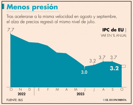 | Inflación en EU se desacelera en octubre a 3.2% anual. | ||||||