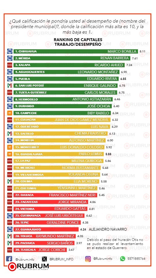 Xalapa, Ver.- Pasan los meses y el alcalde Ricardo Ahued Bardahuil sigue entre los mejores presidentes municipales del país, pues de acuerdo con un estudio elaborado por la consultora RUBRUM para evaluar el desempeño de las autoridades municipales en las 31 capitales del país, el Edil de Xalapa es el tercer alcalde mejor evaluado de todo México.