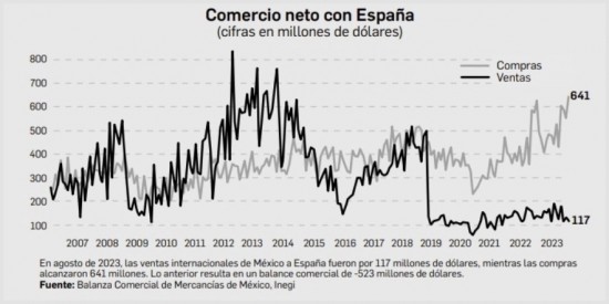 Datos de la Secretaría de Economía (SE) indican que entre enero y septiembre de este año la IED de España en México ascendió a 3 mil 720 millones de dólares, un crecimiento de casi 60 por ciento en comparación con los 2 mil 337 millones de dólares reportados en igual periodo del año pasado. De esta forma, España regresó a ser el segundo país que más invierte en México después de Estados Unidos (13 mil 500 millones de dólares en los primeros nueve meses), esto luego de que el año pasado cayera hasta la sexta posición. La IED española registrada al cierre del tercer trimestre de 2023, de acuerdo con datos de la SE, es superior en 73 por ciento a los 2 mil 146 millones de dólares que se registraron en todo 2022 (en el último trimestre del año pasado se registró una salida de IED); sin embargo, aún está lejos de los 4 mil 750 millones de dólares reportados en 2021. A principios de 2022 el presidente Andrés Manuel López Obrador pidió una pausa en la relación con España, al acusar el abuso de algunas empresas de ese país, lo anterior ocasionó un desconcierto en el gobierno español, el cual rechazó las críticas en contra de sus empresas. En este contexto, la IED de España en México, según datos de la SE, se desplomó 62 por ciento en 2022 frente a la cifra de 2021. El discurso del presidente mexicano estaba focalizado en el sector energético, señalando a empresas como Iberdrola y Repsol de haber abusado de México al convertirse en las favoritas de administraciones pasadas para obtener contratos. Según datos de la SE, de los 3 mil 720 millones de dólares de IED española en México, 2 mil 344 millones de dólares se han dispersado en el sector de servicios financieros y seguros, es decir, 63 por ciento; en contraste, en el sector de energía, han salido 86 millones de dólares en IED en lo que va del año. En años anteriores, este segmento competía con el financiero por el primer puesto. Información del Banco de México (BdeM) muestra que en cuestiones de comercio la relación entre México y España también ha mejorado en lo que va del año. De acuerdo con cifras del organismo autónomo, entre enero y septiembre pasado el valor de las exportaciones de México a España se ubicaron en 4 mil 31 millones de dólares, un incremento de 5.3 por ciento respecto a las 3 mil 834 millones de igual lapso de 2022; en tanto, al cierre de septiembre de 2023 las importaciones desde el país ibérico se ubicaron en 4 mil 738 millones de dólares, un aumento de 10.3 por ciento frente a los 4 mil 294 millones de dólares de un año antes. |