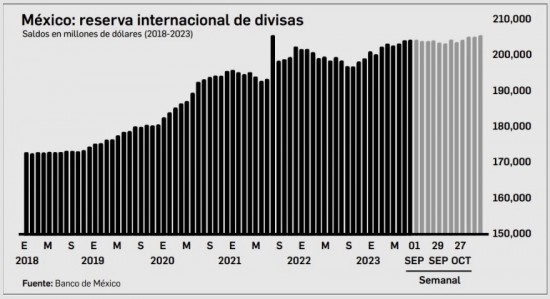 Datos actualizados este miércoles por el Banco de México (BdeM) indican que en lo que va del año el nivel de los activos internacionales del país muestran un crecimiento de 6 mil 529 millones de dólares, o bien, de 3.3 por ciento. De acuerdo con el banco central, el incremento de 361 millones en las reservas internacionales durante la última semana es producto de una disminución en el pago anual de la comisión neta correspondiente a la línea de crédito flexible con el Fondo Monetario Internacional por el equivalente a 85 millones de dólares, acorde con el monto de acceso solicitado de alrededor de 35 mil millones de dólares para los próximos veinticuatro meses. En tanto, los activos tuvieron un incremento de 446 millones de dólares en la valuación, debido principalmente a las fluctuaciones del tipo de cambio. El nivel actual de las reservas internacionales superó el anterior récord de 205 mil 559 millones de dólares registrado la semana del 3 de septiembre de 2021. El segundo monto más alto se dio una semana antes y fue de 205 mil 391 millones de dólares. Claves para la estabilidad Las reservas internacionales son inversiones del BdeM en moneda extranjera, cuya principal característica es su alta liquidez; es decir, la facilidad de ser usadas para saldar rápidamente obligaciones de pago fuera de México. En general funcionan como un indicador de que una economía es capaz de cumplir con sus compromisos en moneda extranjera, lo que ofrece certidumbre a sus acreedores y ayuda a que el país tenga acceso a recursos en mejores condiciones. Para José Rafael Pineda Albarrán, economista e investigador de la Universidad Nacional Autónoma de México (UNAM), en los últimos años se registra una importante acumulación de reservas internacionales en países de América Latina (incluyendo a México), con el fin de protegerse de las crisis financieras como las que se produjeron con muchas frecuencia en la década de los 90. El especialista enfatizó que la estructura institucional del banco central mexicano, así como su reputación, han garantizado una gestión adecuada de los activos, lo que contribuye a reducir la probabilidad de ataques especulativos contra la moneda local. La Comisión de Cambios, integrada por miembros del BdeM y de la Secretaría de Hacienda, es la única facultada para decidir sobre la utilización de las reservas internacionales, y su principal objetivo es contribuir a la estabilidad de precios cuando hay una disminución de los flujos comerciales o de capital de la balanza de pagos por desequilibrios macroeconómicos o financieros, ya sea internos o externos. Asimismo, si bien las reservas internacionales proporcionan importantes beneficios para la estabilidad macroeconómica del país, se debe aclarar que no forman parte de la riqueza de la nación, por lo que no se les puede considerar recursos del gobierno ni tampoco pueden ser invertidas en proyectos de carácter gubernamental. En lo que va de la administración del presidente Andrés Manuel López Obrador estos activos han aumentado en 31 mil 715 millones de dólares, es decir, 18 por ciento. |
