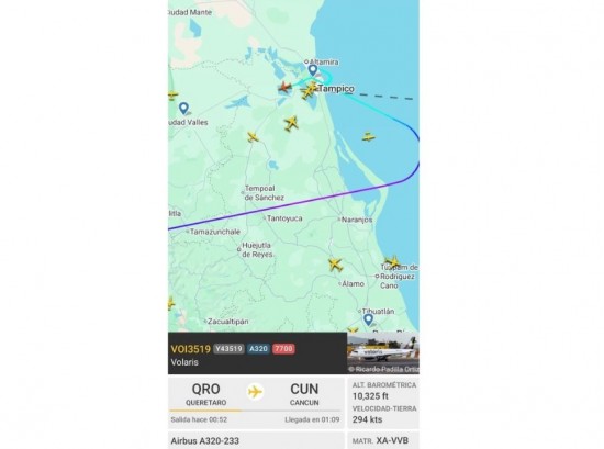 Algunos de los 240 pasajeros relataron que incluso se tuvieron que colocar las mascarillas de oxígeno que hay en la parte superior frontal de los asientos por un lapso de entre 30 y 40 minutos. De acuerdo con el registro del vuelo, el despegue estaba programado para las 12:42 horas de la tarde, pero éste se adelantó tres minutos. La duración del viaje estaba estimada en tres horas con 43 minutos. Sin embargo, en el mapa del vuelo indica que al momento de sobrevolar el puerto de Tampico la nave retornó hacia el lado izquierdo y regresó al aeropuerto de Querétaro. Daniela González, una de las pasajeras del vuelo VOI3519, dijo que una hora después de que la aeronave despegó, es decir aproximadamente a las 13:40 horas, se presentó una turbulencia que ocasionó movimientos violentos en el avión, por lo que las azafatas les pidieron que guardaran la calma, se abrocharan el cinturón y permanecieran sentados. Aproximadamente 20 minutos después, según Daniela "las turbulencias se pusieron más fuertes y fue cuando cayeron las mascarillas" de oxígeno. El personal de la aerolínea les pidió que se los colocaran mientras el avión viajaba por la zona de turbulencias durante 30 minutos más. Luego, según Daniela, los pilotos hicieron maniobras para descender, las cuales fueron muy bruscas. "Estaba en una ventanilla y pude ver que las alas estaban inclinadas" . Poco después les avisaron que iban a tener que regresar al aeropuerto de Querétaro. Durante el trayecto de regreso se encontraron con más turbulencias. Al final pudieron aterrizar. Sin dar explicaciones de lo que había ocurrido, empleados de Volaris ofrecieron reembolsarles el pasaje, programarlo para otro día o tomar el vuelo de las 17 horas. Hasta las 16:30 horas, la empresa no había dado a conocer ningún informe acerca de las causas que obligaron al piloto del vuelo VOI3519 a regresar a Querétaro. Autoridades aeronáuticas ya investigan el incidente. |
