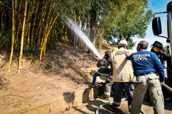 El encargado del área operativa de la Dirección, Víctor Muñoz García, detalló que tras el reporte se movilizó a cuerpos de emergencia y se activó el Sistema Municipal de Protección Civil, el cual involucra a personal de la misma Dirección, elementos del Cuerpo de Bomberos y grupos voluntarios de emergencia, quienes lograron controlar el siniestro. Durante las labores de atención también participó personal de la Comisión Municipal de Agua Potable y Saneamiento (CMAS), que envió pipas de agua, así como la Brigada Interna del Instituto Mexicano del Seguro Social (IMSS) de la Clínica 11 y elementos de Seguridad Ciudadana. “Se usó el método de enfriamiento porque el fuego se propagó sobre bambú, el cual guarda mucho calor”, explicó. Reiteró que a pesar de la magnitud del siniestro, no se reportaron personas lesionadas. Precisó que el fuego se propagó rápidamente por una zona de vegetación seca dentro del área natural protegida conocida como “Predio Barragán”, donde se identificó que la probable causa del incendio fue un "efecto lupa", dado que se observaron botellas de vidrio que pudieron sobrecalentarse por las altas temperaturas y los rayos del sol. Finalmente, reiteró el llamado a la ciudadanía para evitar el abandono de objetos que puedan provocar incendios, especialmente en días de altas temperaturas y en zonas naturales. |