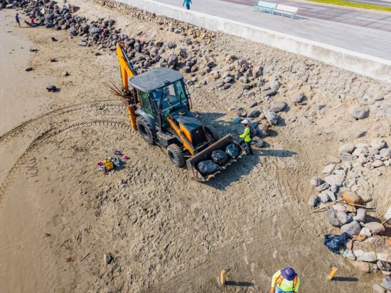 | Nuestro equipo de limpia pública sigue trabajando con todo el compromiso en la zona de playas y el bulevar. |