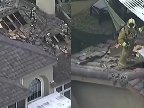 | Fotos y videos publicados por los bomberos muestran un techo perforado, tejas dispersas, árboles rotos | ||||||