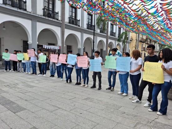 Se manifiestan estudiantes de los municipios de Xalapa, Veracruz y San Rafael, adheridos a la Federación Nacional De Estudiantes Revolucionarios Rafael Ramírez (FNERRR), quienes exigen la inmediata devolución de dos albergues estudiantiles en Oaxaca, pues moradores de ese estado fueron violentamente despojados en dos inmuebles que servían para albergar a jóvenes de escasos recursos que desean continuar con sus estudios, golpeados brutalmente por un grupo de malandros presuntamente protegidos por el Gobierno de Oaxaca y por el alcalde del municipio de Miahuatlán de Porfirio Díaz, César Figueroa.