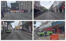 Personal del Sector Salud bloquea otra vez la calle de Enríquez por pago de bono; ya se armó un tráfico en el centro de Xalapa