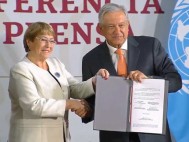 El presidente Andrés Manuel López Obrador y la alta comisionada de la ONU para DH, Michelle Bachelet, firman acuerdo de asistencia para formación de ese cue... 2019-04-09 09:50:45 |