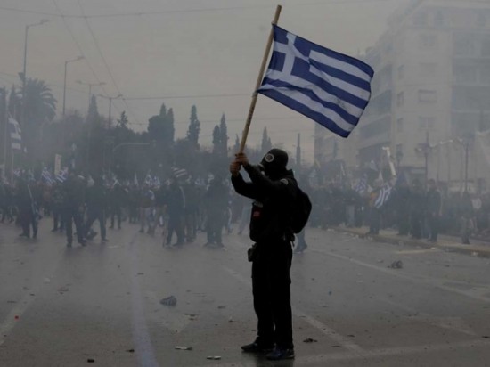 Un protesta contra contra el acuerdo según el cual Macedonia se cambiaría de nombre deriva en enfrentamientos con la policía en Atenas; diez de los heridos son agentes | ||||||
