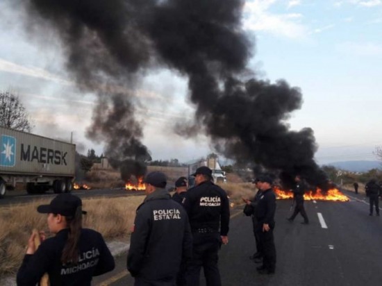 Ciudad de México.- Presuntos estudiantes de la Escuela Normal de Tiripetío secuestraron varios camiones de carga y prendieron fuego a uno en la carretera Morelia-Pátzcuaro.