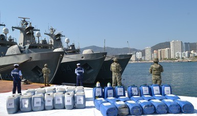 Además han detenido a 402 personas, desmantelando 31 laboratorios dedicados a la elaboración de diversos estupefacientes, asegurando 69 mil 060 kilogramos de diversas drogas y erradicando siete plantíos de mariguana y amapola. La dependencia informó que en los primeros cien días de gobierno "se ha conseguido reducir la producción y tráfico de drogas; asimismo, se han incautado 101 armas y seis mil 552 municiones de diferentes calibres, una aeronave, 16 embarcaciones, 558 mil seis pesos y 487 dólares". Explicó que como parte de las operaciones navales contra la delincuencia organizada se han asegurado más de 13 toneladas de presunta droga entre cocaína, mariguana y droga sintética en lo que va del presente año. Como parte del plan conjunto de atención a instalaciones estratégicas de Pemex, la Semar desplegó mil 694 efectivos, 87 vehículos y 15 aeronaves en coordinación con personal de seguridad física de Pemex. "En cumplimiento a las acciones derivadas del Plan Nacional de Paz y Seguridad del Gobierno de México, la SEMAR despliega a dos mil 788 efectivos en funciones de Policía Naval en apoyo a la seguridad pública en 34 coordinaciones regionales de los 17 estados costeros, habiéndose reforzado la seguridad en cuatro de esas coordinaciones regionales marcadas por altos índices delictivos; tal refuerzo se realizó en los estados de Colima, Guerrero y Quintana Roo", agregó. |