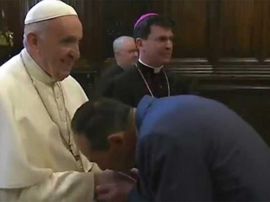 En un video divulgado en redes sociales se ve a Francisco evitando que varios fieles le besaran el 'anillo de pescador', pero no es lo que parece | ||||||