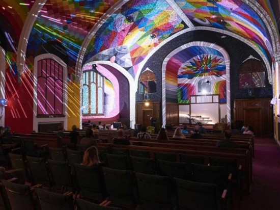 La Iglesia Internacional de Cannabis (ICC), ubicada en Denver, Estados Unidos, presentó un nuevo espacio artístico interactivo para transformar las pinturas en el techo del templo en una "experiencia de meditación guiada" para aquellos que aceptan usar mariguana como parte de su vida espiritual. El techo de la ICC, un grupo religioso "sin teología ni autoridades", fue pintado por el artista español Oscar "Okuda" San Miguel, quien utiliza coloridas figuras geométricas para representar animales, personas y símbolos religiosos. A esas imágenes de tono psicodélico ahora se les agrega audio y video al estilo de los planetarios digitales y proyecciones de rayos láser para "elevar el alma". Creemos que la combinación de innovaciones tecnológicas con la meditación ritual es el futuro de la vida espiritual", explicó Lee Molloy, miembro cofundador de ICC, durante la presentación a la prensa, realizada en la noche del martes. Aún más importante, creemos que la vida es hermosa y que la iglesia no debe ser ni aburrida ni dogmática. Lo que hemos creado es distinto de todo lo que se haya visto antes. La gente de Denver se sentirá orgullosa", aseveró. Molloy enfatizó que la obra original de San Miguel no ha sido alterada, que "el cielorraso de la capilla sigue siendo majestuoso", y que los murales que adornan la iglesia (obras tanto del español como del artista californiano Kenny Scharf) llevan a una "experiencia transcendental" al meditar sobre el significado de esas imágenes. Pero, dijo, los "elevacionistas", nombre que la ICC le da a sus miembros, buscaban "una nueva manera de disfrutar el espacio sagrado". 'ELECTRIFICAR LA CONSCIENCIA' Por eso, en anticipación del 20 de abril (o '4/20' por la forma de la fecha en Estados Unidos), el día que se ha convertido en una celebración anual de la legalización de la mariguana, la ICC decidió incorporar tecnología para ofrecer "una meditación guiada totalmente inmersiva" a personas "de todas las tradiciones religiosas y culturales". Específicamente, el nuevo sistema proyecta sobre las pinturas de San Miguel imágenes conectadas con temas religiosos, espirituales y filosóficos, como la naturaleza, el amor y la muerte. Según Molloy, se trata de "electrificar la consciencia" de los feligreses. La ICC comenzó a operar en abril de 2017 en lo que antes había sido, durante más de un siglo, una iglesia luterana al sur de Denver. En la ceremonia inaugural, el 20 de abril de 2017, el fundador de la iglesia, Steve Berke, fumó mariguana, como lo hizo la gran mayoría de los presentes en ese evento. Por ese hecho, el 1 de febrero de este año Berke fue declarado culpable de no cumplir con la Ley de Aire Limpio de Colorado y multado con 71 dólares. Los cargos habían sido presentados por policías encubiertos que llegaron a la iglesia sin invitación. Berke apeló el fallo por lo que el caso aún no ha concluido. Además, recientes cambios en las leyes estatales clarifican las reglas para el consumo grupal de mariguana dentro de propiedades privadas, por lo que ya no se podrán presentar cargos como los que enfrentó Berke. Usamos la planta sagrada para revelar la mejor versión de nosotros mismos y para enriquecer nuestra comunidad con los frutos de nuestra creatividad", dijo Molloy. |