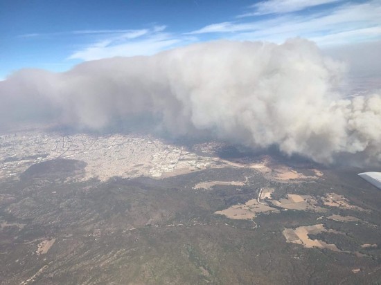 A las 21:00 horas, la Secretaría de Medio Ambiente y Desarrollo Territorial (Semadet) activó Emergencia Atmosférica en el poniente y sur-centro del área metropolitana de Guadalajara debido a la contaminación provocada por el incendio forestal. Para abatir el fuego que inició alrededor de las 15 horas, participan elementos de la Unidad Estatal de Protección Civil, de bomberos de los municipios del área metropolitana de Guadalajara, brigadistas forestales de los municipios de Chiquilistlán, Tecolotlán, Autlán y bomberos del Estado de las regiones de Poncitlán y Ciudad Guzmán. Anoche se sumó el Ejército al combate del fuego, mediante la aplicación del Plan DN III. Los fraccionamientos que están cerca a la zona del siniestro son El Cielo, El Origen, El Palomar, Bosques de Santa Anita y Bugambilias. Protección Civil invitó a evacuar de manera preventiva a vecinos de 100 casas de Bugambilias y El Cielo. Mientras que las colonias más afectadas por el humo son: El Tizate, Los Robles, Puerta del Bosque, Foret, El Fortín, Luna Bosque, Villas Primavera, Arenales Tapatíos, Ciudad Bugambilias, Santa Ana Tepetitlán, Mariano Otero, Miramar, Paraisos del Colli, Jardines del Ixtepete, El Briseño, Colli Urbano, Fraccionamiento Arboledas, Las Fuentes, Pinar de la Calma, Las Águilas, La Calma, Loma Bonita, Loma Bonita Ejidal, Guadalupe Inn, Arcos de Guadalupe, Plaza Guadalupe, Ciudad, del Sol, Chapalita Sur, Santa Eduwiges, Residencial Victoria, Jardines de los Arcos, Verde Valle, Bosques de la Victoria, Las Torres, Del Sur, López de Legaspi, Colón Industrial, Del Fresno, Jardines de Los Arcos, Arcos, Moderna, 8 de Julio, y Ferrocarril. La Semadet recomienda evitar realizar actividades al aire libre, cerrar puertas y ventanas, usar cubre bocas, y moderar el uso del automóvil. Además, suspender clases en los planteles universitarios cercanos al incendio de La Primavera. Es el tercer incendio que se registra en esta semana en el área natural protegida. Se cuenta con 96 unidades, y siete helicópteros, entre ellos Tláloc, Zeus, Palomo, Witari y Halcón. Anoche se empleó un helicóptero con visión nocturna, debido a que los otros tuvieron que parar por la nula visibilidad. De momento se mantiene saldo blanco. |