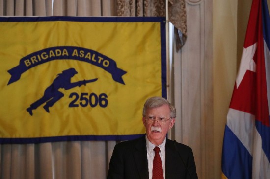 "La troika de la tiranía -Cuba, Venezuela y Nicaragua- está empezando a desmoronarse", afirmó el asesor de seguridad nacional de la Casa Blanca, John Bolton, en un discurso contundente cerca de Miami, en el 58º aniversario de la fallida invasión de Bahía de Cochinos a Cuba por parte de Estados Unidos, en un intento para derrocar al gobierno de Fidel Castro. | ||||||