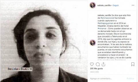 .- En redes sociales circula una fotografía supuestamente de Emma Coronel la cual habría sido tomada unos minutos después de que se realizara la captura de ‘El Chapo’ Guzmán en Mazatlán, Sinaloa, durante el 2014.