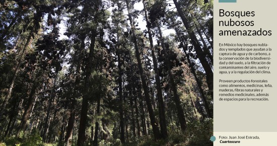 En México hay bosques nublados y templados que ayudan a la captura de agua y de carbono, a la conservación de la biodiversidad y del suelo, a la filtración de contaminantes del aire, suelo y agua, y a la regulación del clima. | ||||||