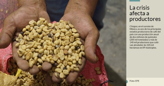 Chiapas, en el sureste de México, es uno de los principales estados productores de café del país con una producción anual de dos millones de quintales (200 mil toneladas) y más de 140 mil productores que cultivan alrededor de 220 mil hectáreas en 89 municipios. Pero el estado ha sufrido una grave afectación en sus cafetales a causa de la roya, hongo que afecta directamente a la planta del cafeto que no le permite producir sus frutos hasta causar la muerte de la misma. La plaga no ha podido ser controlada, invadiendo miles de hectáreas. Ello, aunado al bajo precio del café y la falta de financiamiento al campo, ha ocasionado que miles de productores estén en cartera vencida, sin que puedan saldar las deudas contraídas para salvar sus cosechas y plantaciones. Ello a su vez ha causado un desplome de la actividad, afirmó a Efe Jorge Argüello Reyna, representante del Centro Agroecológico San Francisco de Asís, que acompaña a la Red Maya de Productores, y añadió que la inversión ha venido a menos a raíz de la crisis financiera de 2008. “El Estado dejó de invertir o financiar mucha actividad agrícola. En 1993 del 100 por ciento de los créditos 50 por ciento eran refaccionario, eran de largo plazo, 50 por ciento eran de avío. Hoy el poco crédito qué hay se divide en 90 por ciento avío y 10 por ciento refaccionario, lo que quiere decir que no hay inversión de largo plazo y eso hace que las tierras dejen de cultivarse”, expresó. A este paso la actividad podría desaparecer en los próximos años si no se buscan soluciones inmediatas, ya que cada día se cultiva menos café y la demanda es grande en el país y para exportación. Además, esta situación está obligando a los productores a abandonar el campo y emigrar. “Chiapas se convirtió en los últimos cinco años en el principal expulsor de mano de obra. Según datos oficiales emitidos por el Instituto de Mexicanos en el Exterior, (solo) los que están en Tijuana (son) un total de medio millón de chiapanecos producto de esa crisis”, señaló Argüello. Apuntó que más del 70 por ciento de los productores están en cartera vencida y que la roya ha hecho que pierdan 70 por ciento de la producción, “pérdida que estimamos en más de 30 mil millones de dólares por año por la caída de los precios, la roya misma y la falta de inversión”. “Nos llueve sobre mojado”, dijo Argüello, y precisó que tres hace años el producto se comercializaba a casi 3 mil pesos (158 dólares) por libra mientras que hoy el precio alcanza apenas mil 500 pesos (79 dólares). La entidad produce café de alta calidad, con exportaciones principalmente a Estados Unidos y diversos países de Europa. Fernando Pérez Pérez, de la Cooperativa Flor de Pascua de la comunidad Chula Vista, municipio de Tapachula -la región con más producción de café de exportación- manifestó que la vida del productor con esta situación no es color rosa. Por ahora no ha cosechado nada todavía, por lo que mientras tanto solamente están “limpiando los cafetales”. “Aquí casi todo el día se está trabajando de seis (de la mañana) a dos de la tarde, porque de ahí comemos nosotros. Ahorita también estamos sembrando café pero viene pequeño. Tengo seis niños (que) están en la escuela y de aquí mismo tengo que sacar”, expuso. Las mujeres participan también en la producción de café para ayudar al hogar y evitar que sus hijos emigren a otras ciudades, ya que la situación cada día se complica más para las familias que se dedican a cultivar café. Angelina Sánchez Velásquez indicó que la intención de participar en la producción es tener un mejor futuro y bienestar para sus hijos, por lo que trabajará sembrando café en 2.5 hectáreas. “Estamos luchando por sobrevivir; por eso estamos aquí porque sabemos (que) va a dar el rendimiento. Hay muchas metas: tener una casa propia para mis hijos, el estudio, darles un mejor futuro”, manifestó. Agregó que aquí no se encuentra trabajo y si se encuentra es poco lo que se gana, por lo que muchos campesinos jóvenes y adultos emigran hacia el norte del país, porque es donde pagan un poco mejor. “Pero la verdad yo no quiero que mis hijos se fueran para allá. Por eso estamos luchando, para que nuestros hijos tampoco agarren ese camino (y) si Dios permite aquí podamos sobrevivir”, concluyó. |