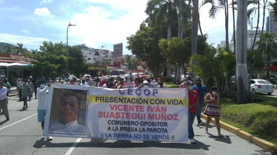 | Representantes de diversas organizaciones sociales y colectivos exigieron la presentación con vida de Vicente Suástegui, hermano de Marco Antonio Suástegui, quien es vocero del Consejo de Ejidos y Comunidades Opositores a la Presa La Parota (Cecop). | ||||||