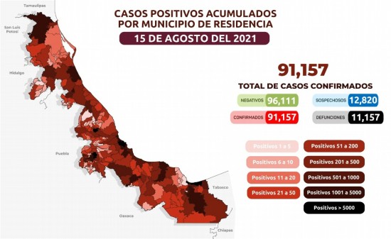 | Van 11,157 muertes por COVID-19 en Veracruz; se acumulan 91,157 contagios. |