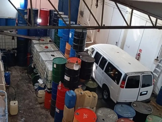 Al ingresar al inmueble, los policías confirmaron que dentro del inmueble se localizan bidones, tambos y muelas con aparente hidrocarburo, con aproximadamente 30 mil litros.