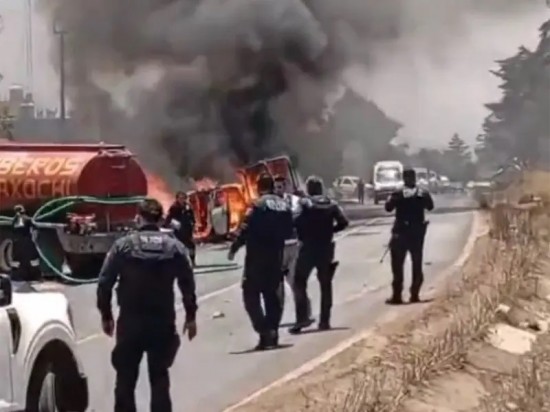 | Presuntos huachicoleros despojaron a policías de su patrulla y la incendiaron sobre la antigua carretera México-Tuxpan, a la altura del municipio de Acaxochitlán, en Hidalgo | ||||||