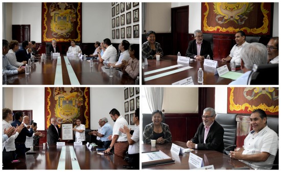 Por su respaldo para mejorar las prestaciones laborales, el respeto a las Condiciones Generales de Trabajo y su compromiso con la justicia social, el alcalde Alberto Islas Reyes recibió un reconocimiento del Comité Ejecutivo del Sindicato de Trabajadores al Servicio del Ayuntamiento de Xalapa adherido a la CROC. El secretario general de la organización, Rolando Ortega Salazar, expuso que esto fortalece la relación institucional e impulsa a todos a seguir trabajando con responsabilidad y lealtad en beneficio de la sociedad. El dirigente sindical agregó que durante la presente Administración se han tenido buenos acuerdos en favor de la base trabajadora, entre los que destaca la retabulación salarial, así como la entrega en tiempo y forma de equipamiento y herramientas para que los empleados municipales desempeñen una buena labor. La secretaria general de la Federación Regional de la CROC, Olga Morales del Valle, resaltó que el buen trabajo del Alcalde se ve reflejado en la relación con los distintos sindicatos, pero también en una obra pública histórica que ha transformado a Xalapa. El presidente municipal Alberto Islas Reyes agradeció el reconocimiento y se comprometió a seguir trabajando de la mejor manera con el presupuesto disponible, pues el mayor interés que tiene esta Administración es el bienestar de la ciudad. Asimismo, destacó que los resultados obtenidos hasta ahora en materia de obra pública y paz social no existirían sin el respaldo y esfuerzo de los trabajadores: “Somos ejemplo estatal en orden financiero y la aplicación transparente de los recursos”. A la reunión también asistieron el secretario general de la Primera Sección del Sindicato CROC, Miguel Ángel Briones Méndez; el secretario general de la Segunda Sección, Armando Caiceros Ortigoza; el secretario general de la Cuarta Sección, Esaú Contreras Soriano, así como delegados e integrantes del Comité Ejecutivo. |