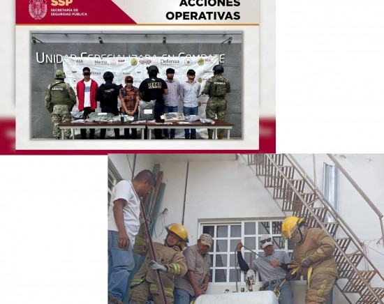 XALAPA.- A través de un operativo conjunto, fuerzas de seguridad de los tres órdenes de Gobierno lograron liberar a una persona que presuntamente se encontraba privada de su libertad, aseguraron droga y armamento, y se detuvo a cuatro personas, entre ellas un presunto líder criminal, en Cotaxtla. De acuerdo con los reportes de la Secretaría de Seguridad Pública, las acciones se realizaron en coordinación con la Secretaría de Marina (SEMAR), Guardia Nacional, Ejército Mexicano (DEFENSA) y la Fiscalía General del Estado, lo que permitió obtener resultados importantes. Se informó que entre lo asegurado se encuentran cuatro bolsas con presunta marihuana, un arma de fuego, cargadores, cartuchos útiles, tres teléfonos celulares, un radio de frecuencia y equipo táctico. De igual forma, durante la intervención fue liberada una persona que presuntamente se encontraba privada ilegalmente de su libertad. Los cuatro detenidos, junto con los objetos asegurados, fueron puestos a disposición de las autoridades competentes, quienes determinarán su situación jurídica, con respeto a sus derechos humanos y el debido proceso. La SSP destacó que este operativo forma parte de las acciones permanentes para combatir a los grupos delictivos y garantizar la seguridad de la población…EL CUERPO de Bomberos de Misantla activó un servicio de emergencia la tarde de este martes por una fuga de gas en una vivienda ubicada en la calle Álvaro Obregón. De acuerdo con los reportes, la fuga se originó en un tanque estacionario de 300 litros, el cual presentó un daño en la válvula mientras personal de la empresa Gas Exprés realizaba un servicio de recarga. Sin embargo, al momento de la activación del servicio de emergencia, los técnicos de la compañía ya no se encontraban en el lugar, por lo que los bomberos atendieron la situación, aseguraron el tanque y controlaron la fuga. Se informó que el tanque contaba con un abastecimiento de 140 litros, por lo que se decidió trasladarlo a la empresa Gas Express Nieto, ubicada en Martínez de la Torre, para su revisión y reparación. En apoyo a los bomberos y al personal de la empresa, acudieron elementos de Protección Civil del Gobierno del Estado, así como el director de Protección Civil de Misantla y la Policía Municipal, quienes colaboraron para garantizar la seguridad de los vecinos y de la propiedad afectada. El incidente fue controlado a tiempo, sin registrarse personas lesionadas ni daños mayores en la vivienda, demostrando la coordinación efectiva entre autoridades locales y la empresa para prevenir riesgos mayores en la comunidad. Las autoridades recomendaron mantener la revisión constante de los equipos de gas doméstico y contar con protocolos claros de atención inmediata ante fugas o accidentes similares.