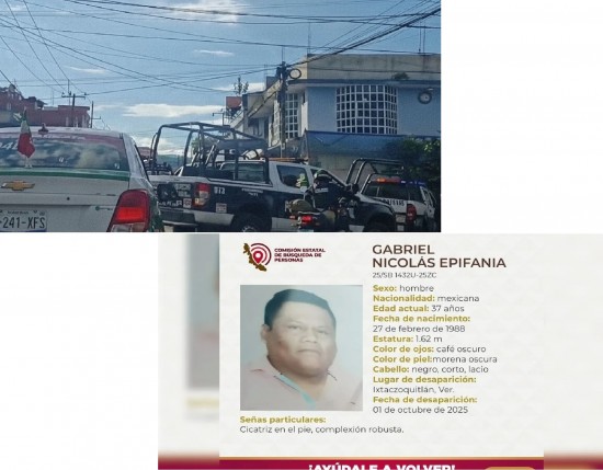 XALAPA.- La tarde de este viernes cinco sujetos fueron detenidos tras una fuerte movilización de los cuerpos de seguridad, en Xalapa, luego de que los vecinos reportaron detonaciones de arma de fuego presuntamente realizadas desde un vehículo en movimiento. El incidente ocurrió en la colonia Portón Colorado, donde pobladores alertaron al 911 sobre un vehículo en el que varios sujetos, aparentemente alcoholizados, realizaban disparos al aire mientras circulaban por la zona. Elementos de la Policía Municipal, con apoyo de la Policía Estatal, implementaron un operativo conjunto para localizar a los responsables. Luego de patrullajes en las colonias aledañas, fue sobre la avenida Atenas Veracruzana, en la colonia Revolución, donde los uniformados lograron interceptar un vehículo que coincidía con las características descritas por los testigos. Dentro de la unidad viajaban cinco sujetos quienes fueron detenidos en ese momento. Durante la revisión, los elementos policiacos aseguraron armas de fuego en su poder. Aunque no se reportaron personas lesionadas, las autoridades señalaron que la situación representaba un riesgo evidente para la población. De acuerdo con los reportes, los sujetos habrían estado ingiriendo bebidas alcohólicas antes de que una discusión entre ellos desencadenara los disparos, los cuales alarmaron a los residentes de la zona. Los cinco detenidos fueron trasladados al cuartel de San José, donde se lleva a cabo la revisión legal del caso para determinar su situación jurídica en las próximas horas. Las armas quedaron aseguradas como parte de la investigación en curso….UN HOMBRE de 37 años de edad, originario del municipio de Ixtaczoquitlán, fue reportado como desaparecido por la Comisión Estatal de Búsqueda de Personas de Veracruz, luego de que perdió toda comunicación con sus seres queridos desde el pasado miércoles primero de octubre. El ahora desaparecido fue identificado como Gabriel Nicolás Epifania y su familia se encuentra muy preocupada por él. Se informó que el varón tiene cicatrices en el pie y es de complexión robusta como señas particulares, además tiene una estatura aproximada de 1.62 metros, ojos café oscuros, tez morena oscura y cabello negro, corto y lacio. Debido a que temen por su integridad física ya que podría ser víctima de la comisión de un delito, su familia interpuso una denuncia por desaparición ante la Fiscalía Especializada en Atención a Personas Desaparecidas con sede en Orizaba, con el propósito de agilizar su búsqueda y localización con bien. De igual forma, solicitaron el apoyo de la ciudadanía en general de Ixtaczoquitlán y la región de Las Altas Montañas, para cualquier información que ayude a dar con su paradero.