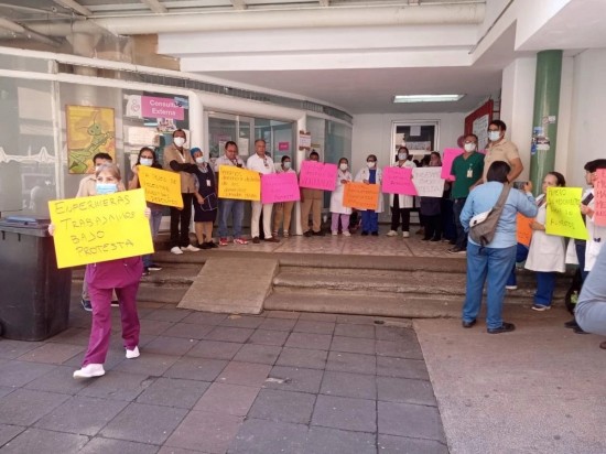 Personal médico trabaja bajo protesta en Xalapa; exigen servicio de alimentos. | ||||||