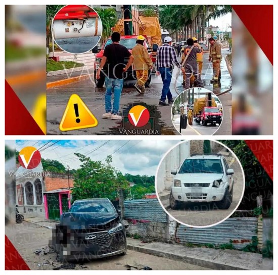 Bomberos y personal de Protección Civil controlaron la emergencia, destacando que no hubo daños a terceros por la fuga del combustible. Mientras tanto, personal de Tránsito Municipal aseguró el vehículo y lo remolcó al corralón…. EL CONDUCTOR de un vehículo que presuntamente era perseguido por autoridades policiacas perdió el control y terminó impactando contra una camioneta Chirey negra y una Ford Ecosport, ambas estacionadas sobre la calle Cruz del Sur, en la colonia Laredo, en Poza Rica. El percance ocurrió alrededor de las 2 de la madrugada de este martes con saldo de daños materiales en las dos camionetas estacionadas, sin que se reportaran personas lesionadas. Elementos de la Policía Municipal arribaron al sitio donde aseguraron el vehículo responsable y detuvieron al conductor, quien fue puesto a disposición de las autoridades competentes para el deslinde de responsabilidades. El accidente provocó la movilización de las unidades policiacas y de agentes viales, quienes realizaron labores para liberar la vía y garantizar la seguridad en la zona.