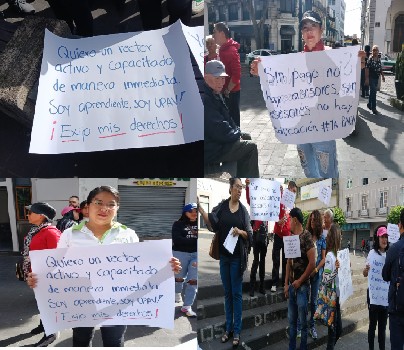 | Esta mañana de viernes 14 de noviembre, maestros solidarios y alumnos de la Universidad Popular Autónoma Veracruzana (UPAV), se manifiestan en plaza Lerdo, porvel retraso en los pagos a docentes, asi mismo para que se nombre un Rector efectivo en la institución educativa y se esclarezca el destino de los pagos de los estudiantes realizados a la institución.. |
