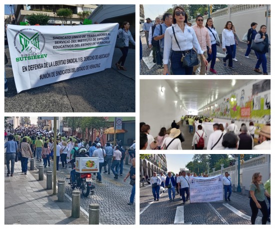Varios secretarios generales de sindicatos del Poder Ejecutivo y del magisterio, integrados en "El frente sindical, por la democracia laboral en Veracruz", se pronunciaron en contra de la reforma a la Ley Estatal del Servicio Civil y realizaron una marcha que partió de la calle de Enríquez hacia el Congreso del Estado para entregar un documento a la diputada Naomi Edith Gómez Santos, presidenta de la Mesa Directiva de la LXVI Legislatura del Congreso local. Acdmer Antonio Galicia Campos, secretario general del sindicato de empleados del Poder Ejecutivo señaló que las organizaciones sindicales presentes, con representación real y activa en todo el Estado de Veracruz, con fundamento en los artículos 1", 8, 9, 14, 16, 25" de la Constitución Política de los Estados Unidos Mexicanos, así como en los artículos 2", 7" y 14, de la Constitución Política del Estado de Veracruz de Ignacio de la Llave, para expresar de manera firme y categórica lo siguiente: “El día 13 de noviembre fue presentada ante el Congreso del Estado la Iniciativa con proyecto de decreto que modifica diversas disposiciones de la Ley Orgánica del Poder Ejecutivo, la Ley Estatal del Servicio Civil y la Ley Orgánica del Poder Judicial del Estado de Veracruz, el contenido de esta iniciativa atenta gravemente en contra de los avances obtenidos en materia de derechos humanos y laborales; de su simple lectura se advierten graves violaciones constitucionales, con un impacto profundo e irreversible en las condiciones laborales, estabilidad en el empleo, derechos adquiridos, libertad de afiliación y sindical del personal que servimos al Estado”. Agregó que resulta indispensable subrayar que ninguna reforma legislativa que afecte directamente a la clase trabajadora puede avanzar sin la participación, consulta y análisis técnico de las organizaciones sindicales, “proceder de manera unilateral constituiría un acto contrario a los principios de legalidad, progresividad, transparencia participación ciudadana y gobernanza democrática, por lo que las organizaciones firmantes reiteramos que la legitimidad de cualquier proceso de reforma laboral depende de que la voz de los trabajadores sea parte central del análisis legislativo, una reforma construida sin nosotros no solo sería injusta, sería jurídicamente vulnerable, socialmente insostenible y políticamente inviable, además de que resultaría incongruente plasmar en la iniciativa transparencia y participación de los trabajadores en la vida sindical la cual ya existe en todas nuestras organizaciones”. Por lo anterior, en uso pleno de sus derechos y responsabilidades como representantes legítimos de la base trabajadora, exigieron: “La suspensión inmediata del proceso legislativo sobre la iniciativa mencionada, hasta que se garantice la participación formal y directa de las organizaciones sindicales, proceder sin consulta constituiría un acto de exclusión institucional que derivará en acciones legales, constitucionales y sociales para la defensa de los derechos colectivos; la instalación urgente de una Mesa de Trabajo con carácter vinculante, integrada por representantes de la Legislatura, de las dependencias afectadas y de las organizaciones sindicales de manera prioritaria, misma que deberá contar con información técnica, impacto presupuestal, alcances jurídicos y consecuencias laborales de cada modificación propuesta, y en razón de lo anterior, solicitamos se dé respuesta formal y por escrito a la presente dentro de los términos constitucionales aplicables”.