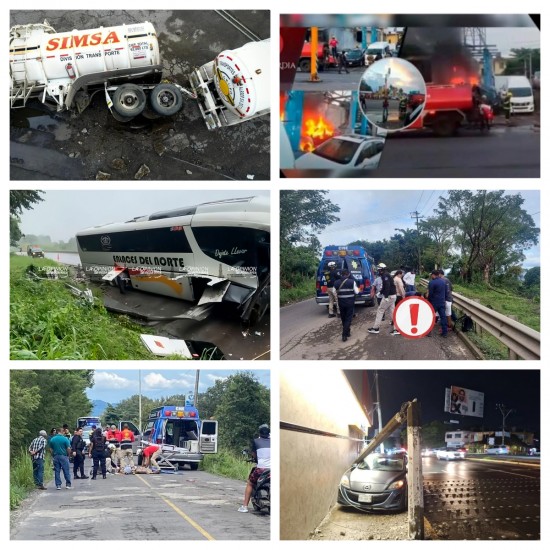 Xalapa, Ver.- La noche del lunes una pipa volcó en la ciudad de Veracruz al caer en un bache. Los hechos ocurrieron en Independencia Norte de la colonia Manuel Contreras, en donde desde la madrugada una pipa doble remolque que transporta gasolina, cayó a un socavón, provocando que volcara. Vecinos reportaron el hecho a emergencias. Tras el accidente se movilizaron Bomberos, Protección Civil e incluso personal de Pemex, quienes constataron que no existe fuga...UNA AGENCIA de autos usados se incendió la avenida Miguel Alemán, junto al mercado Malibrán en el puerto de Veracruz. El siniestro, acontecido la mañana de este martes, movilizó a los Bomberos del municipio, tras ser alertados por los ciudadanos, al ver la densa columna de humo que salía del lugar. De acuerdo con los primeros informes, el incendio inició en una camioneta de modelo reciente, presuntamente una Hyundai, y debido a la cercanía entre las unidades, el fuego se propagó rápidamente, alcanzando al menos a un segundo vehículo que se encontraba estacionado en la parte posterior del predio. Gracias a la rápida intervención de los bomberos conurbados, quienes arribaron al lugar y sofocaron las llamas tras varios minutos, el fuego no se expandió en el lugar... UNA UNIDAD de turismo de la empresa Enlaces del Norte sufrió un accidente sobre la autopista Tuxpan–Cardel, en el tramo Totomoxtle–Tihuatlán, a la altura del kilómetro 213. La unidad terminó impactándose contra la valla metálica de contención, quedando a punto de ocasionar una tragedia; transportaba pasajeros provenientes de Monterrey con destino a Cárdenas, Tabasco, se salió de control cuando el conductor se orilló sobre la carpeta asfáltica. Afortunadamente, no se reportaron personas lesionadas, únicamente cuantiosos daños materiales. Al lugar arribaron paramédicos de Caminos y Puentes Federales (Capufe), quienes brindaron atención prehospitalaria a los pasajeros, confirmando que algunos de ellos presentaban crisis nerviosa y golpes contusos leves. Una vez valorados todos los pasajeros y al descartarse lesiones de gravedad, fueron abordados a otra unidad para continuar con su viaje, permaneciendo en el sitio únicamente el conductor de la unidad siniestrada, quien realizó los trámites correspondientes ante las autoridades. Posteriormente, elementos de la Guardia Nacional, División Carreteras, tomaron conocimiento del percance y realizaron labores de vialidad, además de supervisar este tipo de unidades de turismo, que son utilizadas en estas fechas para el traslado de pasajeros a distintos destinos. Al punto también acudieron elementos de la Policía Estatal, base Tihuatlán, quienes abanderaron la zona y apoyaron en las labores de seguridad. Más tarde, con apoyo de una grúa y las compañías aseguradoras, la unidad de pasaje fue retirada del lugar para restablecer la circulación...UN FUERTE accidente vehicular se registró la noche de este lunes en el bulevar Miguel Alemán, esquina con la calle Revolución, en la colonia Centro de la cabecera municipal de Boca del Río, que dejó cuantiosos daños materiales. Un automóvil Mazda era conducido por una joven que salía de una gasolinera para incorporarse al bulevar, cuando presuntamente un camión le cerró el paso. Para evitar una colisión, la conductora realizó una maniobra evasiva, perdió el control de la unidad y subió a la banqueta. Tras esto, el camión involucrado también efectuó una maniobra brusca e impactó un poste de concreto, el cual se partió y cayó encima del vehículo particular. Pese a lo aparatoso del incidente, no se reportaron personas lesionadas. Al sitio acudió un perito de Tránsito Municipal para tomar conocimiento de los hechos y realizar el deslinde de responsabilidades. El conductor del camión se dio a la fuga tras el accidente...EL INFLUENCER Jaime Pascual H. T. fue detenido por elementos de Seguridad Pública de Zacapoaxtla, el hombre es acusado por el delito de trata de personas y era buscado por la Fiscalía General del Estado de Veracruz. La tarde del lunes se llevó a cabo la detención en la calle Arista en el centro de la ciudad de Puebla. Cabe recordar que en octubre pasado, la Fiscalía General del Estado de Veracruz ofreció una recompensa a quien aportara información veraz, útil, eficaz y oportuna para la localización, detención o aprehensión del C. Jaime Pascual Hernández Toral por su probable participación en la comisión del delito de trata de personas. Ofrecía 350 mil pesos a quien proporcione información que lleve al paradero de Jaime Pascual Hernández Toral, para su captura. El influencer era conocido porque grababa una serie de videos con la señora conocida como Doña Lety, de quien después se supo, presuntamente se encontraba privada de la libertad. Ahora Jaime Toral está a disposición de las autoridades, quienes determinarán su situación jurídica. Jaime, también fue candidato a la Presidencia Municipal de Tantoyuca Veracruz, por el Partido Movimiento Ciudadano...UN ACCIDENTE vial se registró la noche del lunes cuando un joven automovilista que conducía su auto terminó volcado sobre la avenida Lázaro Cárdenas, justo frente a Plaza Ánimas. El percance se registró en el carril con dirección de Tesorería hacia Las Trancas. El conductor manejaba un automóvil Suzuki, color amarillo, cuando al pasar frente al centro comercial perdió el control de la unidad. Las causas exactas no han sido determinadas, pero el vehículo se desvió hacia la derecha, golpeó directamente contra un talud y, tras el impacto, rebotó antes de volcar y quedar con las llantas hacia arriba sobre el arroyo vehicular. El impacto fue lo suficientemente fuerte como para dejar al conductor atrapado dentro del automóvil. Testigos que circulaban por la zona se detuvieron de inmediato y, antes de la llegada de los cuerpos de emergencia, lograron auxiliar al joven y ayudarlo a salir de la unidad siniestrada. La escena generó momento