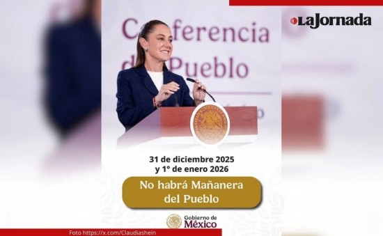 | A través de un mensaje publicado la mañana de hoy en su cuenta de X, la mandataria señaló: “Este miércoles 31 de diciembre y jueves 1 de enero no habrá #MañaneraDelPueblo. Nos vemos el viernes 2 de enero a las 7:30 am”. |
