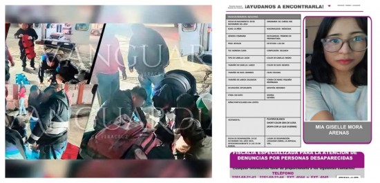 La Fiscalía Especializada para la Atención de Denuncias de Personas Desaparecidas solicita colaboración para localizar a la menor Mía GIsele Mora Arenas, desaparecida desde este lunes 29 de diciembre en la localidad de Cardel, municipio de la Antigua, Veracruz. A través de un boletín de búsqueda de Protocolo Alba, la dependencia estatal detalló que la menor de 15 años de edad tiene las siguientes características: Mide 1.56 metros. Es de complexión delgada. Tiene tez morena clara. Cabello es lacio, negro, largo. Tiene ojos grandes, negros. Labios delgados. Ceja escasa. Nariz pequeña y respingada. Mentón redondo. Cualquier información que ayude a dar con su paradero, favor de reportarla a los teléfonos 228 168 2143 / 228 168 2144 en las extensiones 4044 y 4045...ALBAÑIL FUE trasladado a un hospital luego de ser presuntamente atropellado por un automóvil, cuyo conductor se dio a la fuga con rumbo desconocido, dejando a su suerte al lesionado, hecho que movilizó a los cuerpos de emergencia de Cerro Azul. Los hechos, de acuerdo con los primeros informes, acontecieron en el cruce de la avenida Rafael Nieto con Guadalupe Victoria, en los límites de las colonias La Puerta y Faja de Oro, en donde presuntamente un automóvil particular atropelló a un hombre, quien terminó tendido sobre el pavimento lesionado. Tras los llamados a la línea de emergencia, al sitio llegaron elementos de la Comisión Nacional de Emergencia, para brindarle el apoyo prehospitalario al lesionado, quien fue identificado como Emanuel “N”, quien resultó con una lesión en la extremidad inferior izquierda. Debido a la lesión que presentaba, tuvo que ser trasladado de urgencia al HCCA, lugar donde quedó internado para su atención médica.