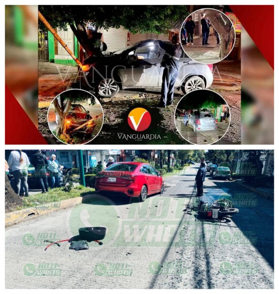 Un motociclista que circulaba en estado inconveniente chocó contra un automóvil en el cruce de las calles Américas con Sarabia de esta capital. Paramédicos de Médica del Futuro y Cruz Roja atendieron al motociclista el cual presentó golpes de consideración. Contra el vehículo que chocó quedó completamente dañado del parabrisas.
