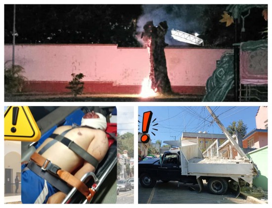 Vecinos de la colonia Benito Juárez de Misantla fueron alertados de un árbol que se encontraba ardiendo en un parque, la madrugada de este sábado. Varios de ellos acudieron y lograron sofocar el fuego, evitando que la situación pasara a mayores. Horas después, el tronco volvió a desprender humo, lo que generó nuevas sospechas y reforzó la preocupación entre los habitantes del sector. De acuerdo con lo que observado en el lugar, una parte del tronco se encuentra hueca. Vecinos detectaron señales de que alguien habría introducido material inflamable para provocar el incendio. En ese sentido, Chacón Hernández señaló que estos hechos no pueden tomarse a la ligera, ya que representan un riesgo para la seguridad de quienes acuden diariamente al lugar. “Ya nos comunicamos con Protección Civil para que se atienda la situación pues es un parque donde menores de edad y jóvenes acuden y es primordial su seguridad. Quiero hacer de su conocimiento que tiene unas semanas que hemos encontrado muy de noche el portón abierto y desconocemos como abren el candado, también nos robaron el candado de la entrada principal y ahora pasa esto”, alertaron. Adelantaron que solicitarán el apoyo de Seguridad Pública para que haya más rondines en la colonia...AUTORIDADES DETUVIERON a un joven identificado como Nahúm N, de 23 años, señalado como presunto autor material del homicidio de Alfredo Jiménez, ocurrido durante la madrugada del pasado 1 de enero en este municipio. Siendo capturado también al sujeto conocido como el “Cachito”, quien fue asegurado el mismo día del crimen y permanece a disposición de la autoridad ministerial. Ambos son considerados presuntamente relacionados de manera directa con el ataque que derivó en la muerte de la víctima. De acuerdo con información obtenida durante las indagatorias, ‘Nahúm N’ fue intervenido por elementos de seguridad tras ser reportado por alterar el orden público, al presuntamente arrojar piedras en la vía pública. Durante la inspección, los agentes habrían localizado entre sus pertenencias una sustancia con características similares al cristal, además de presentar un comportamiento errático. Fuentes consultadas indicaron que el conflicto habría tenido origen en disputas previas entre ambos, aunque estos datos forman parte de la investigación en curso y no han sido confirmados oficialmente. Elementos de seguridad realizaron la detención del segundo presunto implicado tras un reporte ciudadano por alteración del orden público en calles del municipio...ESTA MADRUGADA elementos de la Policía Estatal fueron alertados de que en un domicilio de la calle Vicente Guerrero del municipio de Banderilla un hombre se encontraba mal herido y con bastante perdida de sangre. De acuerdo a lo informado por la pareja sentimental del hombre, se encontraban dormidos cuando el lesionado la despertó y observó una terrible escena, el hombre se encontraba perdiendo bastante sangre, la almohada y la pared salpicadas de manchas hemáticas y 4 cortes de arma blanca en la cabeza. Inmediatamente solicitaron las autoridades el apoyo de una ambulancia debido a que no hay personal de Protección Civil Municipal de Banderilla atendiendo emergencias tras el cambio de la nueva administración municipal. Paramédicos de Comisión Nacional de Emergencias atendieron y trasladaron al hombre a un hospital de Xalapa, su estado de salud se reporta delicado. En el domicilio fueron encontradas bebidas alcohólicas, cigarros y una navaja, hasta el momento se desconocen las verdaderas causas de la agresión...LA TARDE de este sábado se registró un accidente en la calle Poniente 2 de la colonia 9 de Abril, de esta capital Xalapa, donde una camioneta que transportaba materiales se impactó contra una vivienda. En el lugar, un hombre y una mujer fueron atendidos por cuerpos de emergencia y trasladados a un hospital para su valoración médica. Elementos de la Comisión Nacional de Emergencias (CNE) brindaron la atención prehospitalaria. Las autoridades correspondientes tomaron conocimiento del hecho y se mantuvieron pendientes de la situación.