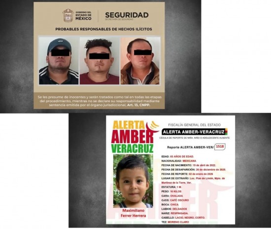 XALAPA.- Elementos de la Comisaría General de Seguridad Ciudadana, adscritos al Grupo Metropolitano Titanes, en el Estado de México, detuvieron a tres sujetos originarios del municipio de Atzalan, Veracruz, acusados como presuntos responsables del delito de robo con violencia en la colonia Las Águilas. Los detenidos operaban fuera de su lugar de origen y ya se investiga su posible participación en otros hechos delictivos. De acuerdo con los reportes, el aseguramiento se derivó de una denuncia ciudadana durante un recorrido de vigilancia preventiva. Según el testimonio de las víctimas, cuatro sujetos los interceptaron mientras se encontraban a bordo de un vehículo, los amenazaron con un arma de fuego y los despojaron de sus pertenencias, para luego darse a la fuga. Las víctimas lograron seguir a distancia a los agresores y, al ubicar la unidad en la que huían —un vehículo Derby de color azul—, solicitaron el apoyo de las corporaciones policiales, lo que permitió su pronta intervención. Como resultado del operativo, fueron detenidos Federico “N”, de 31 años; Efraín “N”, de 28 años, y Julio César “N”, también de 28 años, todos ellos originarios del municipio de Atzalan, Veracruz, un cuarto implicado logró darse a la fuga, por lo que se mantiene abierta la investigación para su localización. Durante la revisión, los uniformados aseguraron dos teléfonos celulares, diversas pertenencias presuntamente robadas y un objeto con características de arma de fuego, lo que fortalece la imputación por robo con violencia. Información recabada por las autoridades señala que los detenidos, pese a ser originarios de Atzalan, operaban en distintas zonas como Zapotitlán, Buenos Aires y Tazolapa, aprovechando rutas de comunicación entre municipios veracruzanos como Atzalan y Altotonga para desplazarse sin levantar sospechas. Este dato ha cobrado relevancia en la investigación, ya que podría vincularlos con otros hechos delictivos cometidos en la región, lo que será analizado dentro de la carpeta de investigación. Los tres detenidos fueron puestos a disposición del Agente del Ministerio Público en la Fiscalía General de Justicia del Estado de México, sede Neza-La Perla, donde se inició la carpeta de investigación correspondiente y se determinará su situación jurídica conforme a derecho. La detención ocurrió en la colonia Las Águilas como resultado de un operativo de vigilancia preventiva y de la oportuna denuncia ciudadana. Las autoridades reiteraron el llamado a la población para reportar cualquier hecho delictivo, destacando que la coordinación entre sociedad y los cuerpos de seguridad es fundamental para frenar la incidencia delictiva, especialmente cuando grupos provenientes de otros municipios intentan operar fuera de su lugar de origen….LA FISCALÍA General del Estado emitió la Alerta Amber-VER/1518 para localizar a Maximiliano Ferrer Herrera, un menor de 3 años de edad desaparecido desde el pasado 26 de diciembre de 2025 en el municipio de Martínez de la Torre. Ante el riesgo de que el pequeño sea víctima de algún delito, se pidió la colaboración de la población. La Fiscalía General del Estado (FGE) activó el protocolo Alerta Amber tras el reporte de la desaparición del menor Maximiliano Ferrer Herrera, de nacionalidad mexicana, ocurrido en la localidad de Plan de Limón, municipio de Martínez de la Torre. El reporte oficial fue emitido el pasado 2 de enero de 2026, luego de que no se obtuvieran datos sobre el paradero del menor. Maximiliano Ferrer Herrera tiene 3 años de edad, nació el 19 de abril de 2022, mide aproximadamente un metro de estatura y pesa 16 kilogramos. Es de complexión infantil, tez moreno claro, rostro ovalado, ojos café oscuros, boca chica, labios delgados y nariz respingada, su cabello es lacio, de color negro y corto, características que han sido difundidas con el objetivo de facilitar su identificación por parte de la ciudadanía. De acuerdo con la información oficial, el menor fue visto por última vez el pasado 26 de diciembre de 2025 en la localidad de Plan de Limón, desde entonces, no se cuenta con información que permita conocer su ubicación. Las autoridades han señalado que existe preocupación fundada por la integridad del niño, ya que podría ser víctima de la comisión de un delito. La Alerta Amber no solo activa a las corporaciones de seguridad, sino que apela a la participación social como un elemento clave para la pronta localización. La difusión responsable de la información y la atención a cualquier indicio pueden marcar la diferencia en casos donde el tiempo resulta crucial, especialmente tratándose de menores de edad. La Alerta Amber-VER/1518 permanece activa en todo el estado de Veracruz. Cualquier información que contribuya a la localización de Maximiliano Ferrer Herrera será tratada de manera confidencial y anónima. Los reportes pueden realizarse a los teléfonos Alerta Amber México: 55 53 46 25 16 y Alerta Amber Veracruz: 228 689 2267, ambos con lada sin costo.