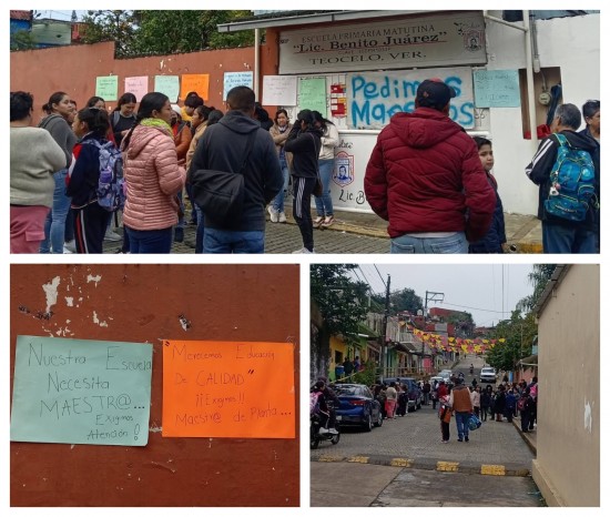 Ante la falta de docentes, padres de familia cuyos hijos asisten en la escuela primaria "Benito Juárez García", ubicada en la ciudad de Teocelo, tienen tomado el plantel educativo ya que exigen a las autoridades de la Secretaría de Educación de Veracruz (SEV) y a su titular Claudia Tello Espinosa solucionar el problema. Esta mañana decidieron hacer esta manifestación y toma del plantel a fin de que ya mande a los dos docentes para segundo y quinto grado, ya que llevan tres meses sin que sus hijos reciban sus clases. Los inconformes piden la intervención de la gobernadora de Veracruz, Rocío Nahle García para que envié a los maestros, dicen que sus hijos necesitan una educación digna y “en el artículo tercero de la constitución mexicana dice derechos a la educación para los niños”. Los padres colocaron cartulinas en la entrada principal de este plantel educativo donde se ven afectados cerca de 70 alumnos por la falta de maestros. Los inconformes advierten que no se van a retirar de esta toma de plantel educativo, hasta tener una respuesta.