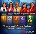 Afirma encuesta de Rubrum que gobernadora Rocío Nahle se ubica en el Top 5 de los gobernadores mejor evaluados del país |