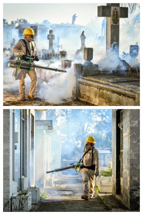 Con el fin de prevenir enfermedades transmitidas por vector como el Dengue, personal del Ayuntamiento, en coordinación con los Servicios de Salud de Veracruz y la Jurisdicción Sanitaria V, realizan acciones de nebulización, aplicación de larvicidas y limpieza general en los panteones municipales. La directora de Salud, Olga Alarcón Ricárdez, expuso que por el 10 de mayo, que es una fecha en que se presenta gran afluencia de personas en los cementerios, trabajadores de la dependencia, con el apoyo de elementos de las direcciones de Limpia Pública y Medio Ambiente, llevan a cabo labores preventivas para que quienes asistan a los panteones encuentren espacios limpios y libres de maleza. Además, personal de la Jurisdicción Sanitaria V realiza nebulizaciones, labores de saneamiento y aplicación de larvicidas en floreros que tienen agua y flores naturales en los panteones Palo Verde, Bosques de Xalapa y 5 de Febrero. En este sentido, exhortó a la ciudadanía que en estas fechas acude a los cementerios a que retire el celofán de las coronas de flores artificiales, ya que el rocío matutino puede provocar que se acumule agua, la cual puede servir para el depósito de las larvas del mosco transmisor del dengue. También se recomienda cambiar el agua de los floreros por tierra húmeda para prevenir la aparición del insecto transmisor de la enfermedad, así como usar repelente, manga larga y sombreros, por las altas temperatura que se han tenido. Finalmente, recordó que aunado a estas acciones cada sábado se realizan jornadas de descacharrización en diferentes colonias del municipio para eliminar los criaderos del mosco transmisor del dengue. |