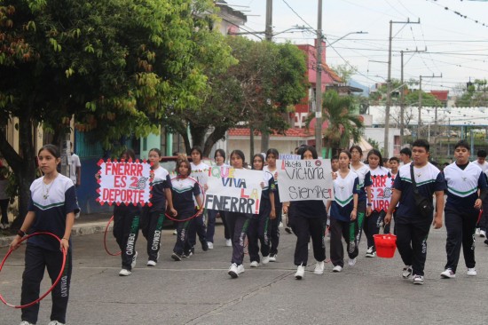 Esta mañana se llevó a cabo el gran desfile conmemorativo del 25 aniversario de la llegada de la Federación Nacional de Estudiantes Revolucionarios Rafael Ramírez (FNERRR) en Córdoba, por las principales calles de zona de las colonias San Román - Antorcha, en el cual participaron las más de 5 escuelas de nivel medio superior fundadas por dicha Federación. El contingente de más de setecientos estudiantes cordobeses del nivel medio superior, encabezados por Andrés Bonilla Santiago, integrante de la Dirección Nacional de la FNERRR; Fabio Emilio López Verdugo, dirigente de la FNERRR en Veracruz; y Cristian de Jesús García García, dirigente de la FNERRR en Córdoba, quien dijo que este desfile es un llamado “a que los estudiantes tengan una visión crítica del acontecer nacional y mundial. Luchemos porque el contenido de los planes y programas de estudio se apeguen a los métodos científicos y de investigación; que no se utilice la ciencia para crear una ideología al servicio de las clases explotadoras con la cual manipulen y sometan a las clases explotadas; y que en las escuelas tengamos acceso todos los hijos de las clases trabajadoras". Por su parte, el representante de la FNERRR nacional, Andrés Bonilla, recalcó qué: "no hay otra organización estudiantil en México cómo es la FNERRR, que después de 26 años podemos decir que aquí están los estudiantes organizados". A su vez, criticó que hoy en día "existen escuelas que no tienen condiciones educativas, que no tiene aulas, pizarrones, laboratorios, centros de cómputo, entre muchos otros, y menos curbetura educativa en las escuelas". Por lo que "nuestra Federación a lo largo de estos 26 años continúa luchando para que la educación en México sea una educación de calidad,para construir un país verdaderamente competente que atienda los problemas más sentidos en los que vivimos en esta patria. Por ello, es importante seguir llamando a la juventud a organizarse", finalizó Bonilla Santiago. Por último, agradecieron a todos los jóvenes, padres de familia y maestros por participar en este evento y llamaron a toda la juventud a seguir organizandose. Al culminar el desfile se aglutinaron en el campo de fútbol el Pueblito, en dónde realizarán un partido amistoso entre la selección de fútbol del Cobaev 46 vs CecyTev 31 de Coetzala. |