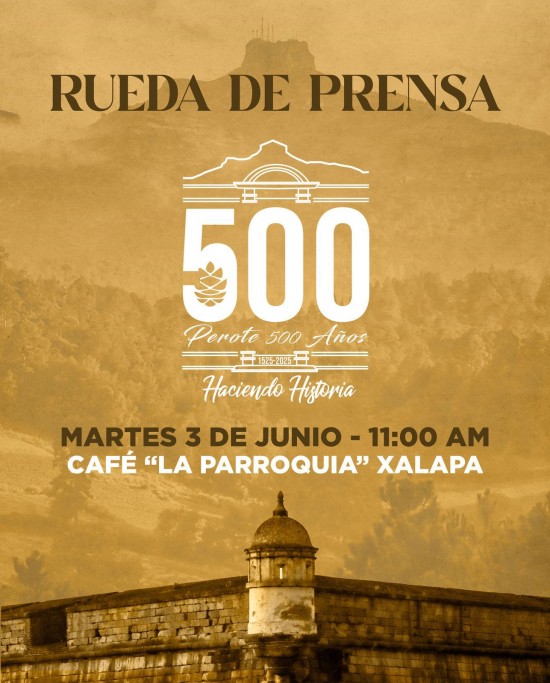 El H. Ayuntamiento de Perote tiene el honor de invitarle a la rueda de prensa con motivo de los preparativos rumbo a la conmemoración de los 500 años de Perote (1525–2025). La cita es el próximo martes 3 de junio a las 11:00 a.m., en el tradicional Café “La Parroquia” de Xalapa. Durante este encuentro se compartirán los detalles de las actividades conmemorativas, enmarcadas en el lema “Perote 500 Años: Haciendo Historia”, que celebran medio milenio de identidad, cultura y legado. Contaremos con la presencia del Presidente Municipal, C. Delfino Ortega Martínez; la Regidora Quinta, Ivanna Paola Robledo Melgar; el Director de Turismo, Arqlgo. Emmanuel González Merino, y el Lic. Armando Muñoz Vásquez. Será un gusto contar con su presencia para dar realce a este acontecimiento histórico. |