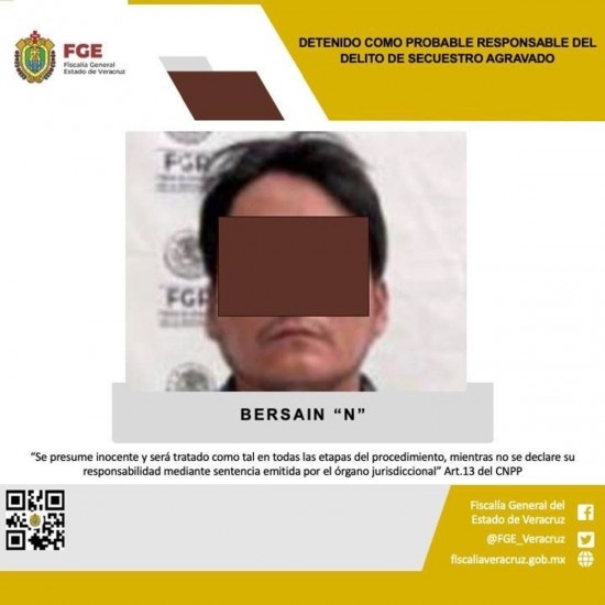 De acuerdo con las autoridades, los hechos que se le imputan habrían ocurrido el 11 septiembre de 2013 cuando presuntamente habría participado en la privación de la libertad de la víctima identificada con las iniciales J.F.J.V. Posteriormente, el 18 del mismo mes el cuerpo fue localizado sin vida en las cercanías del río Tlilapan. “Sujetos armados la ingresaron a un vehículo y se la llevaron con rumbo desconocido. Posteriormente, se exigió un pago a cambio de su liberación”, indicó la FGE. Bersain “N” fue detenido en Tlalnepantla de Baz, Estado de México y posteriormente puesto a disposición de un juez de Veracruz quien determinará su situación legal. |